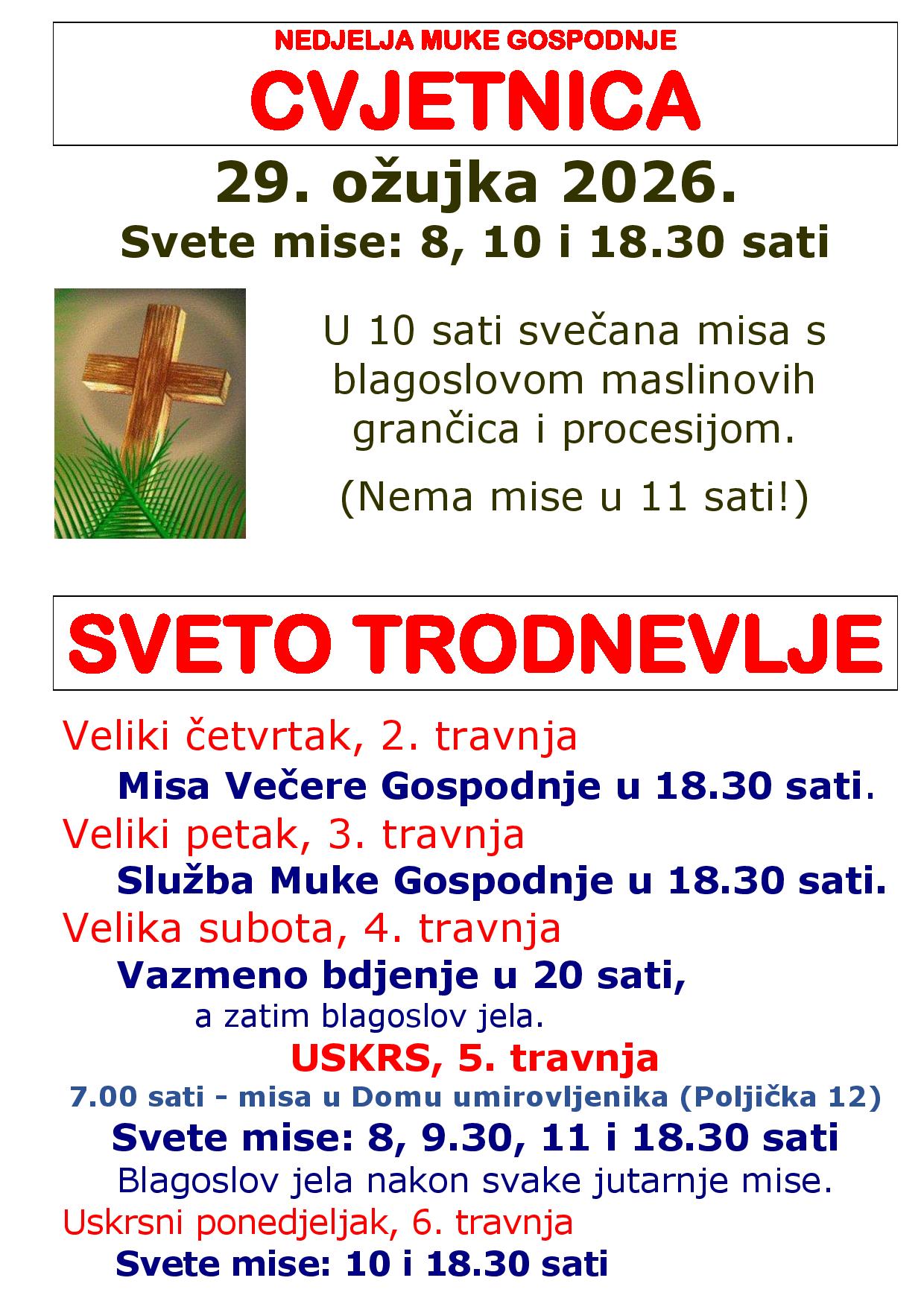 U PDF-u PRONAĐITE RASPORED SV. MISA I OBREDA VELIKOG TJEDNA.