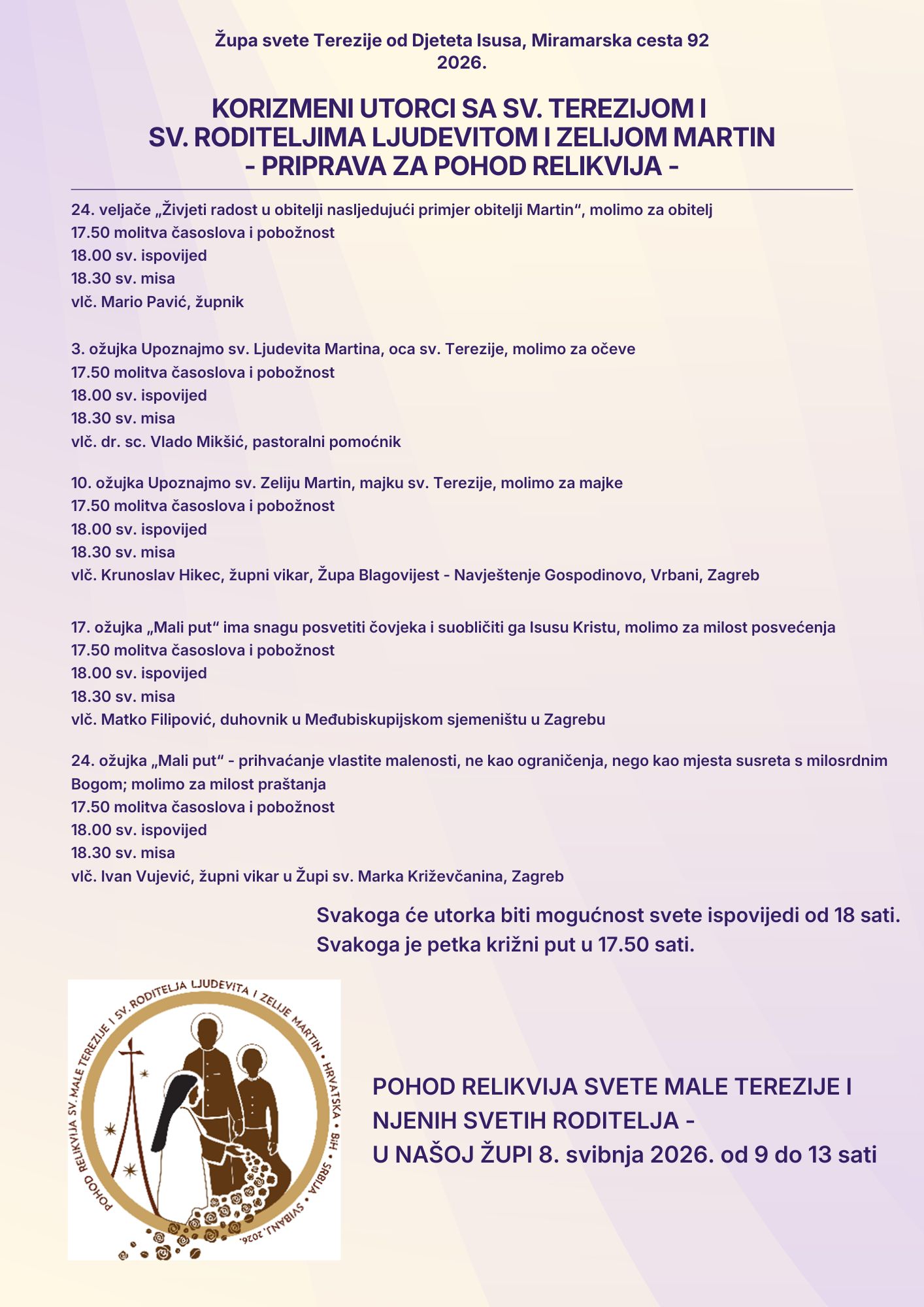 KORIZMENI UTORCI SA SV. TEREZIJOM I SV. RODITELJIMA LJUDEVITOM I ZELIJOM MARTIN - PRIPRAVA ZA POHOD RELIKVIJAMA -