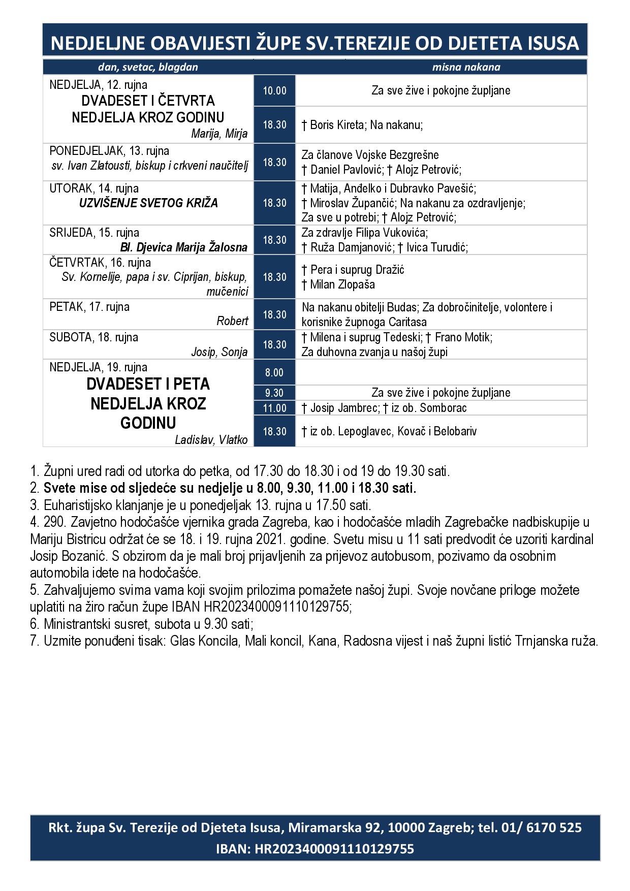1. Župni ured radi od utorka do petka, od 17.30 do 18.30 i od 19 do 19.30 sati.