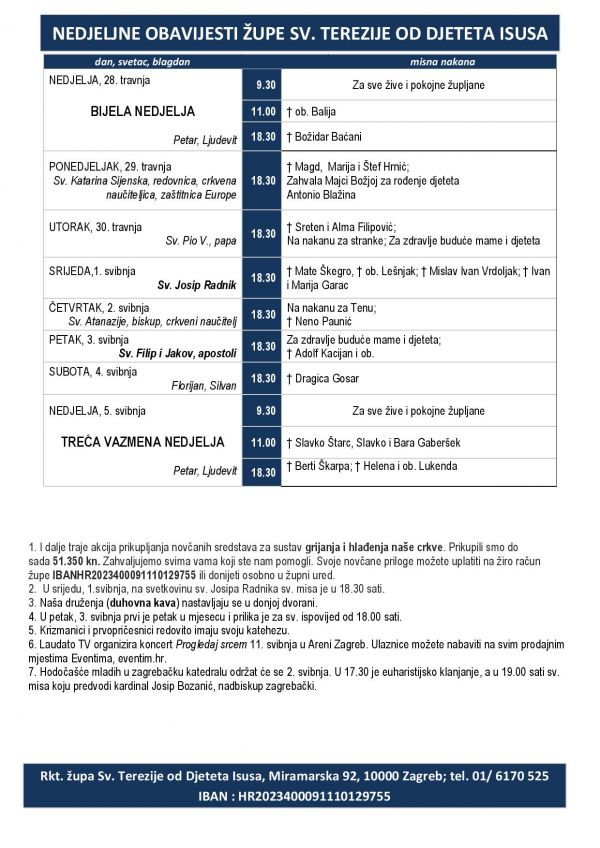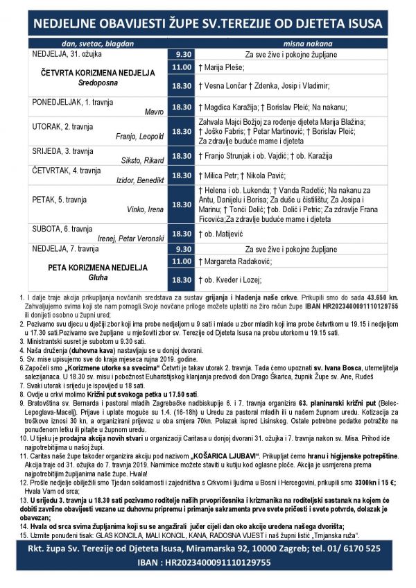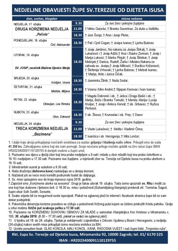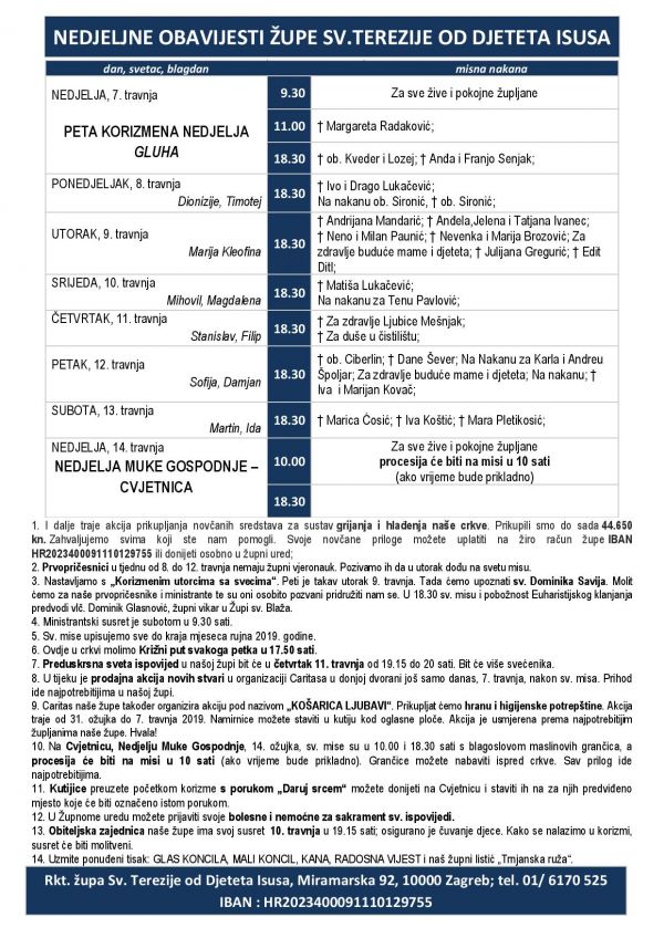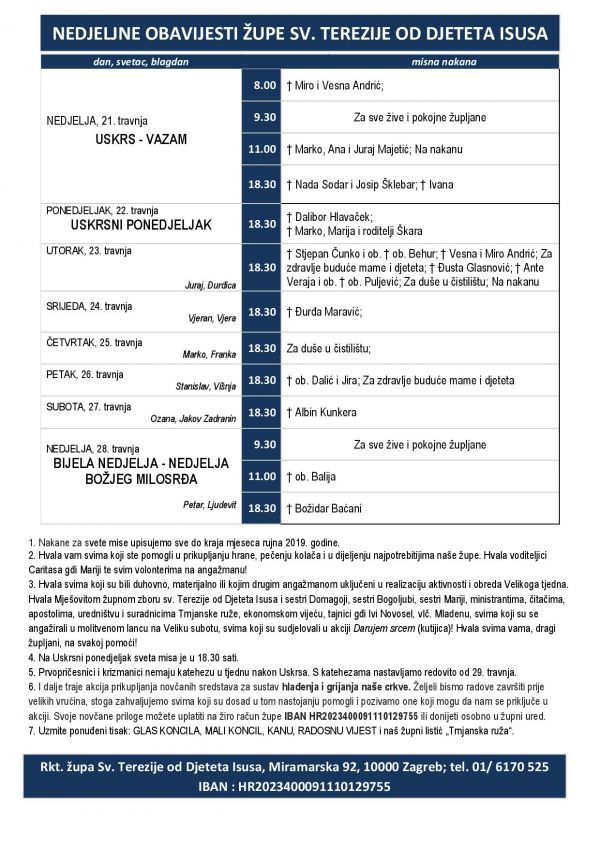1. Nakane za svete mise upisujemo sve do kraja mjeseca rujna 2019. godine.