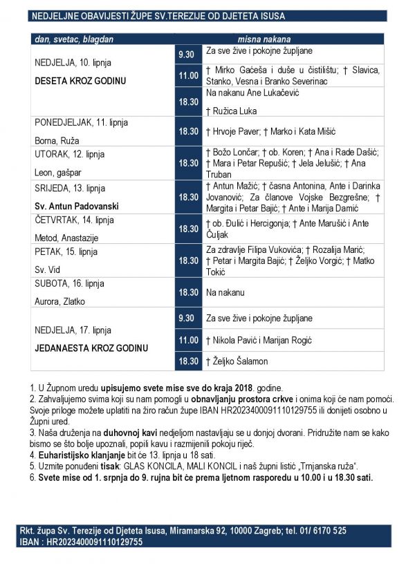 3. Hvala svima koji ste darovali svoj prilog za našu crkvu (župu), svoje priloge možete uplatiti na žiro račun žup...