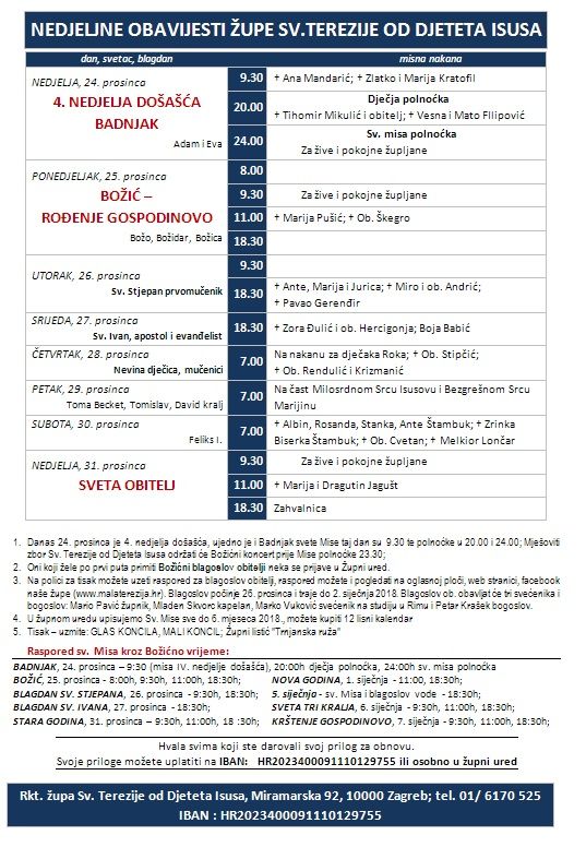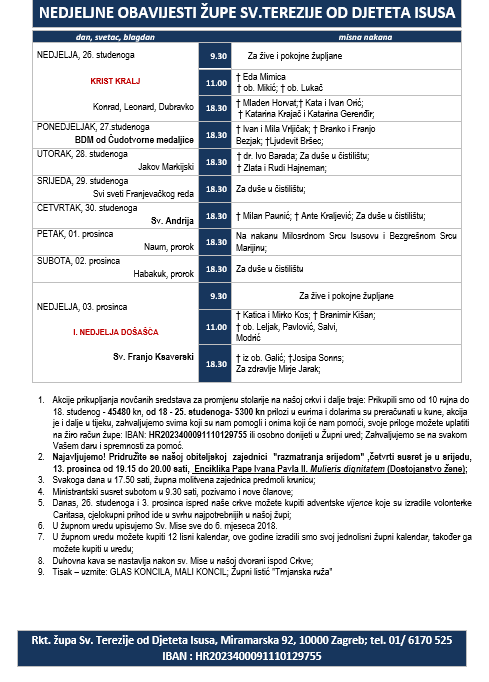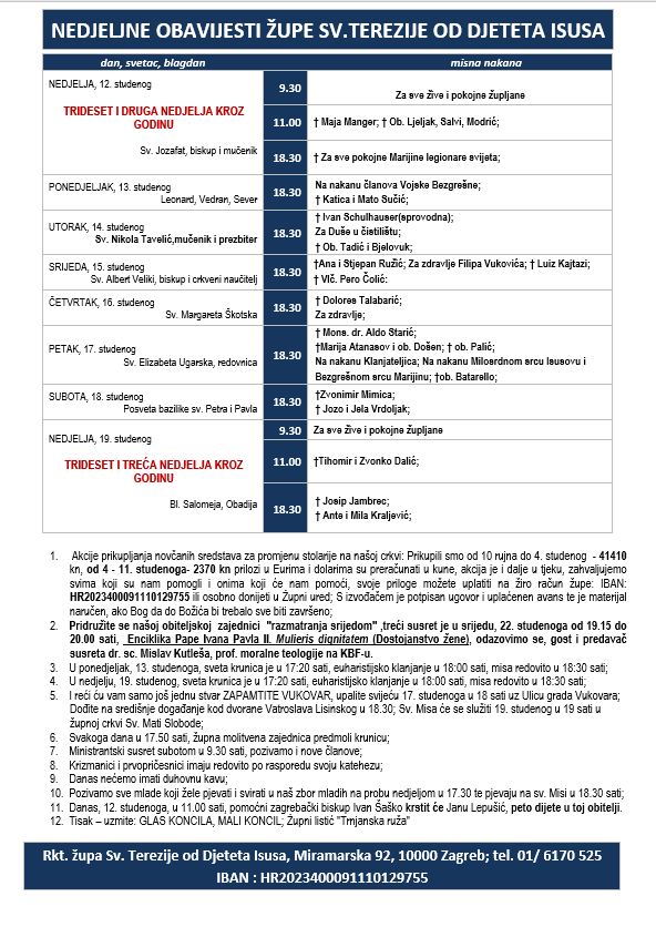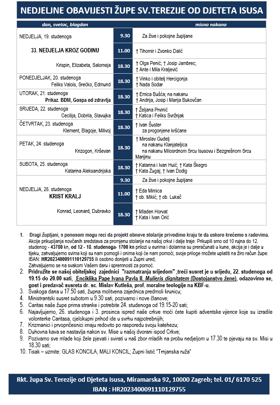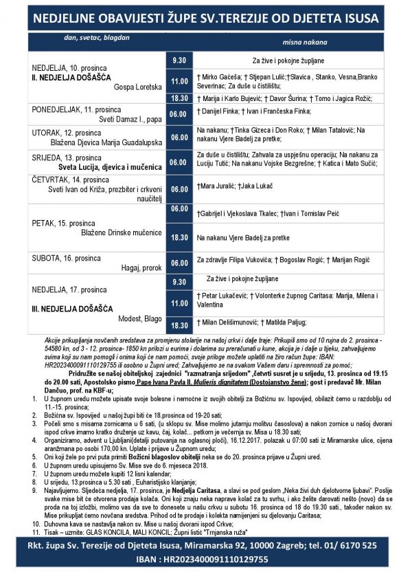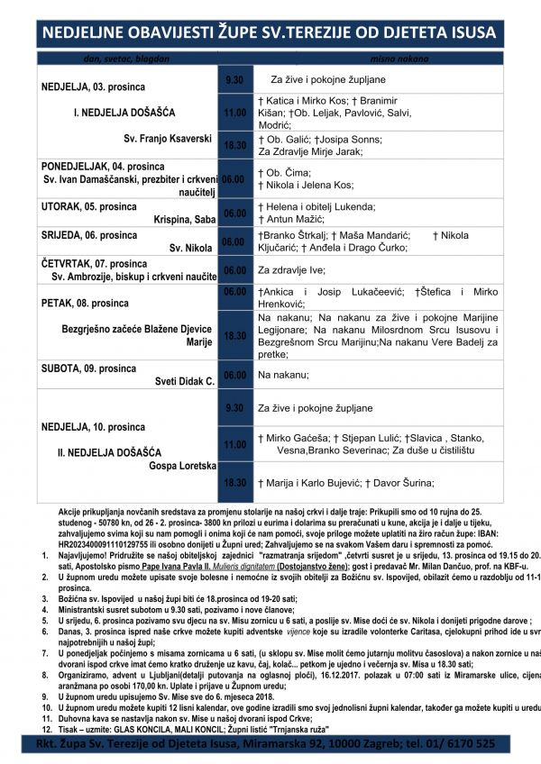 Akcije prikupljanja novčanih sredstava za promjenu stolarije na našoj crkvi i dalje traje: Prikupili smo od 10 rujna do 18. studenog - 45480 kn, od 18 - 25. studenoga- 5300 kn prilozi u eurima i dolarima su preračunati u kune, akcija je i dalje u tijeku, zahvaljujemo svima koji su nam pomogli i onima koji će nam pomoći, svoje priloge možete uplatiti na žiro račun župe: IBAN: HR2023400091...