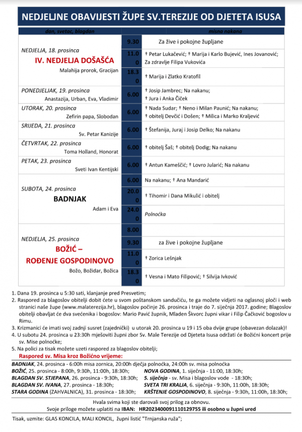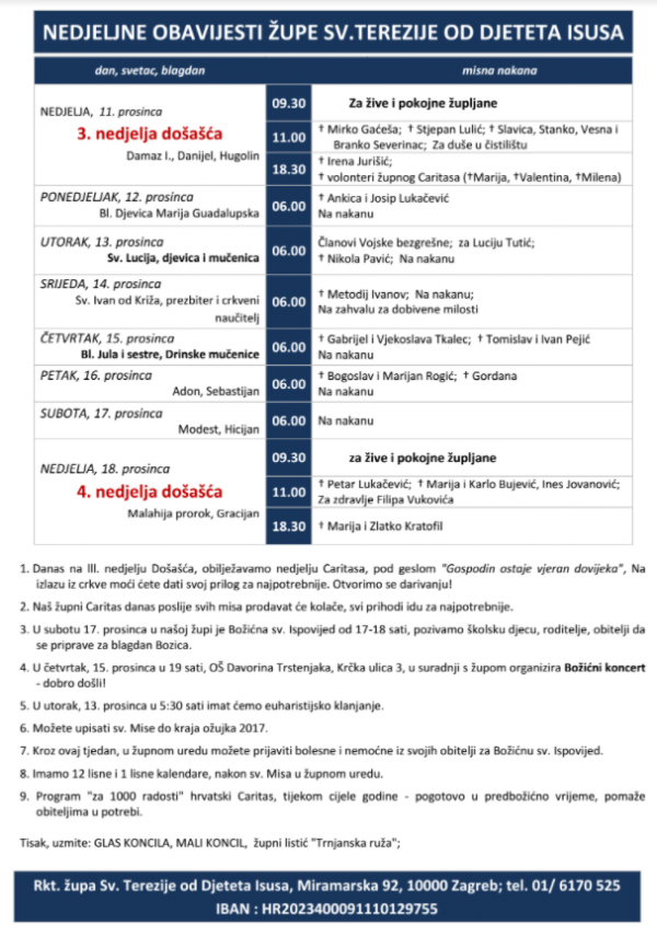 2. Nakon svih Sv. Misa možete kupiti adventski vijenac koje izrađuje naša, caritas-kreativna skupina, a sav prilog ide za potrebe Caritasa;